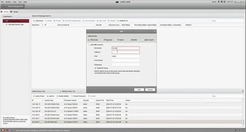 - 4. روی گزینه Camera Management یا Device Management کلیک کنید. NVRها را یکییکی با وارد کردن آدرس IP اختصاصی هر دستگاه به نرمافزار اضافه کنید.