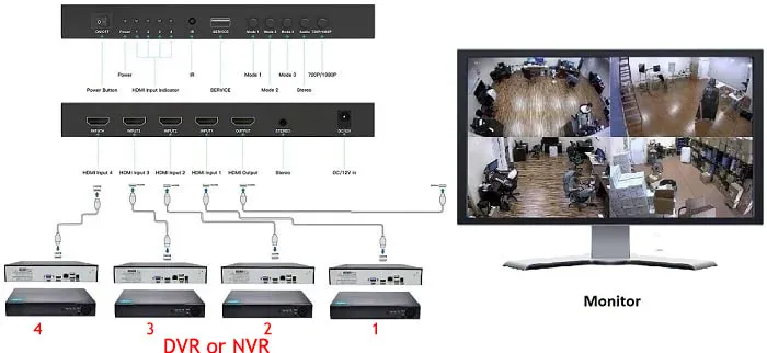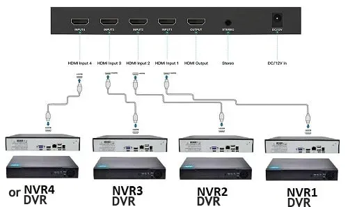 روش اول: اتصال چند NVR/DVR به یک مانیتور با استفاده از HDMI Multiviewer