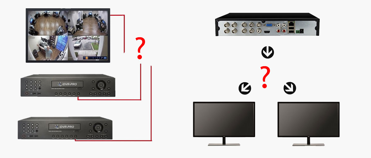 در چنین شرایطی، بهترین راهحل این است که دو NVR/DVR را به یک مانیتور متصل کنیم تا بتوان همه دوربینها را از یک محل کنترل و مشاهده کرد.