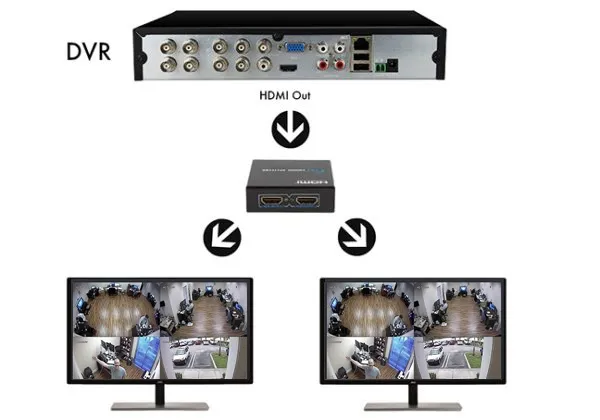 یک راه ساده دیگر برای اتصال یک NVR به دو مانیتور، استفاده از اسپلیتر HDMI یا VGA است. در بازار تجهیزات الکترونیکی، اسپلیترها در برندها، طول کابلها و تعداد خروجیهای مختلف عرضه میشوند.